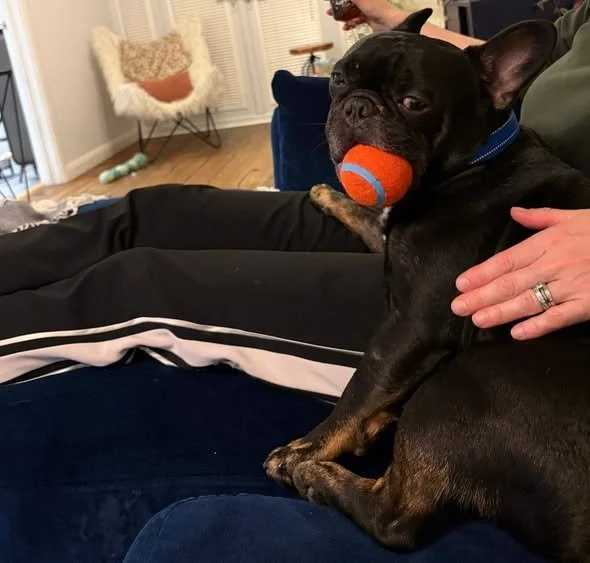 “She is the sweetest, most loving little girl — I never thought I would find another like her. She definitely keeps the floor spotless with her hunt for anything that resembles food! Thank you to everyone at Frenchie & Friends for the amazing work you do for these special babies.